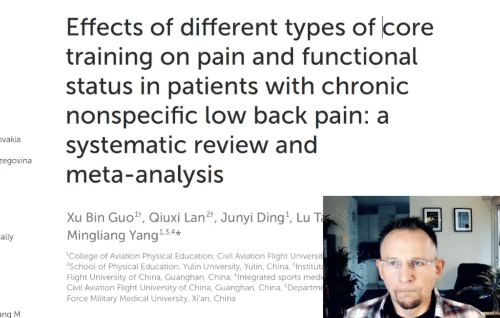 Mikä harjoitusmuoto on paras alaselkäkipuun? Uusi tutkimus. Käyn videolla läpi tutkimuyksen, jossa verrataan kolmea erilaista harjoitusmuotoa alaselkäkipuun.. Tervetuloa hoitoon!